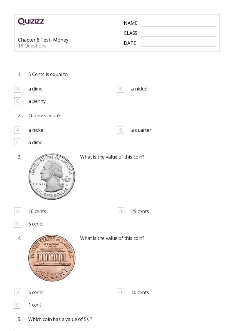 50+ Quarters Worksheets For 1st Class On Quizizz